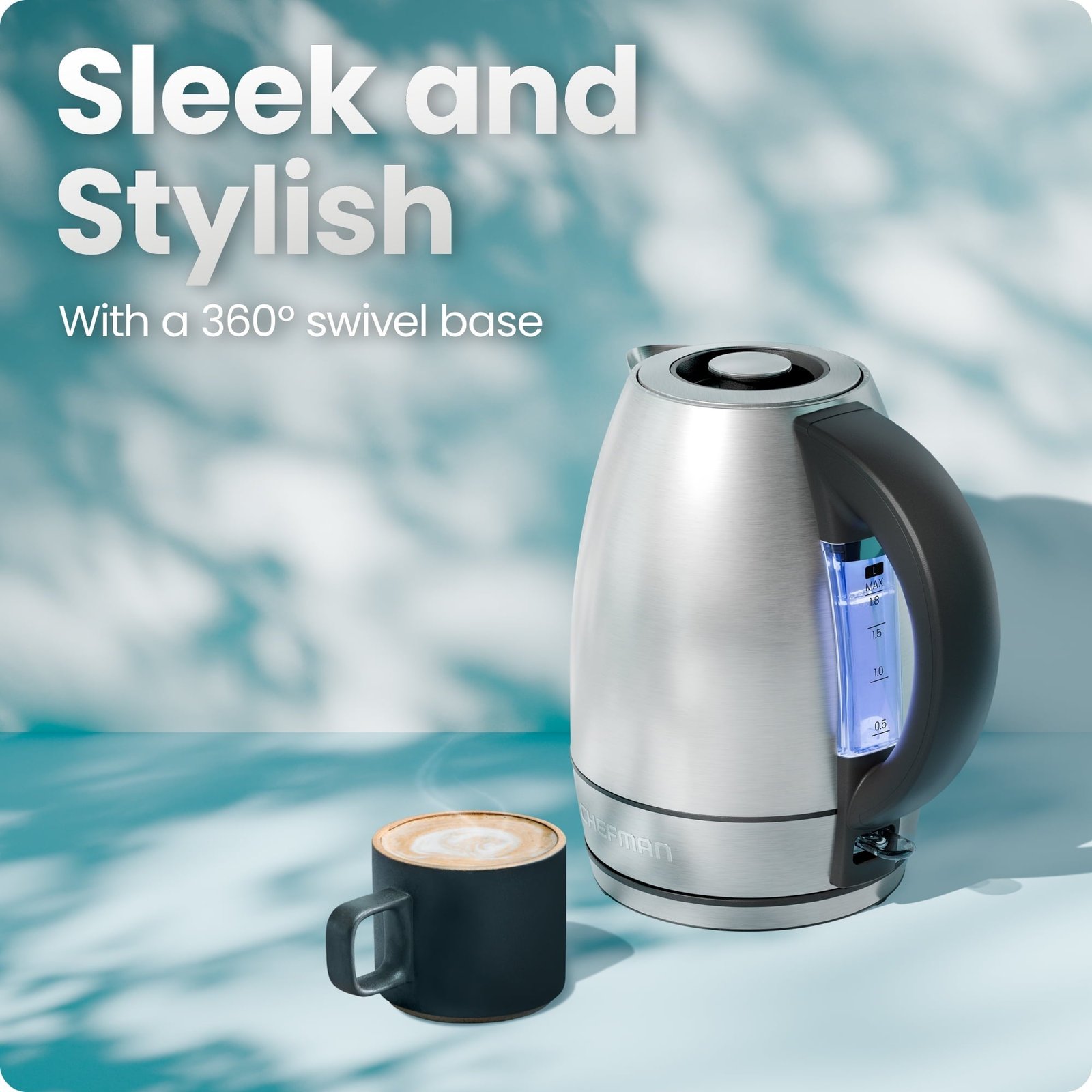 Chefman 1.8 Liter Electric Kettle, 1500W Rapid Water Boiler with Lift-Out Lid – Stainless Steel