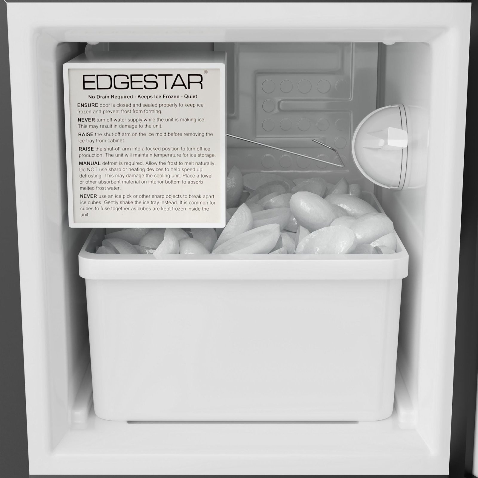 • Easy Operation: A straightforward on/off switch activates the production of ice and once full, the unit will shut itself off