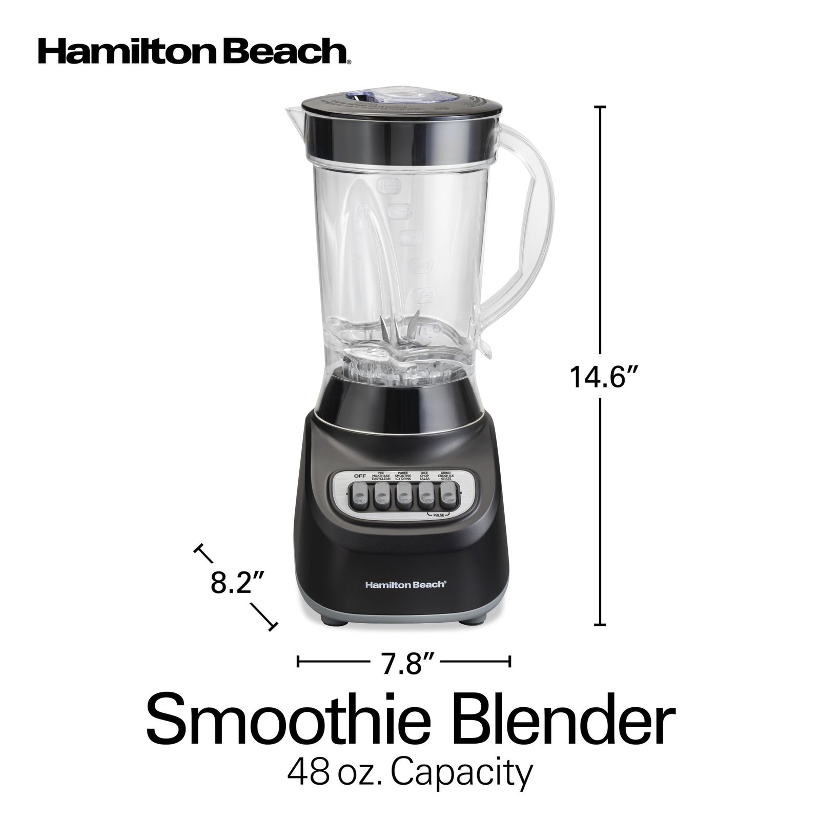 Hamilton Beach Smoothie Blender for Kitchen, 48 oz Jar for Smoothies and Shakes, Black