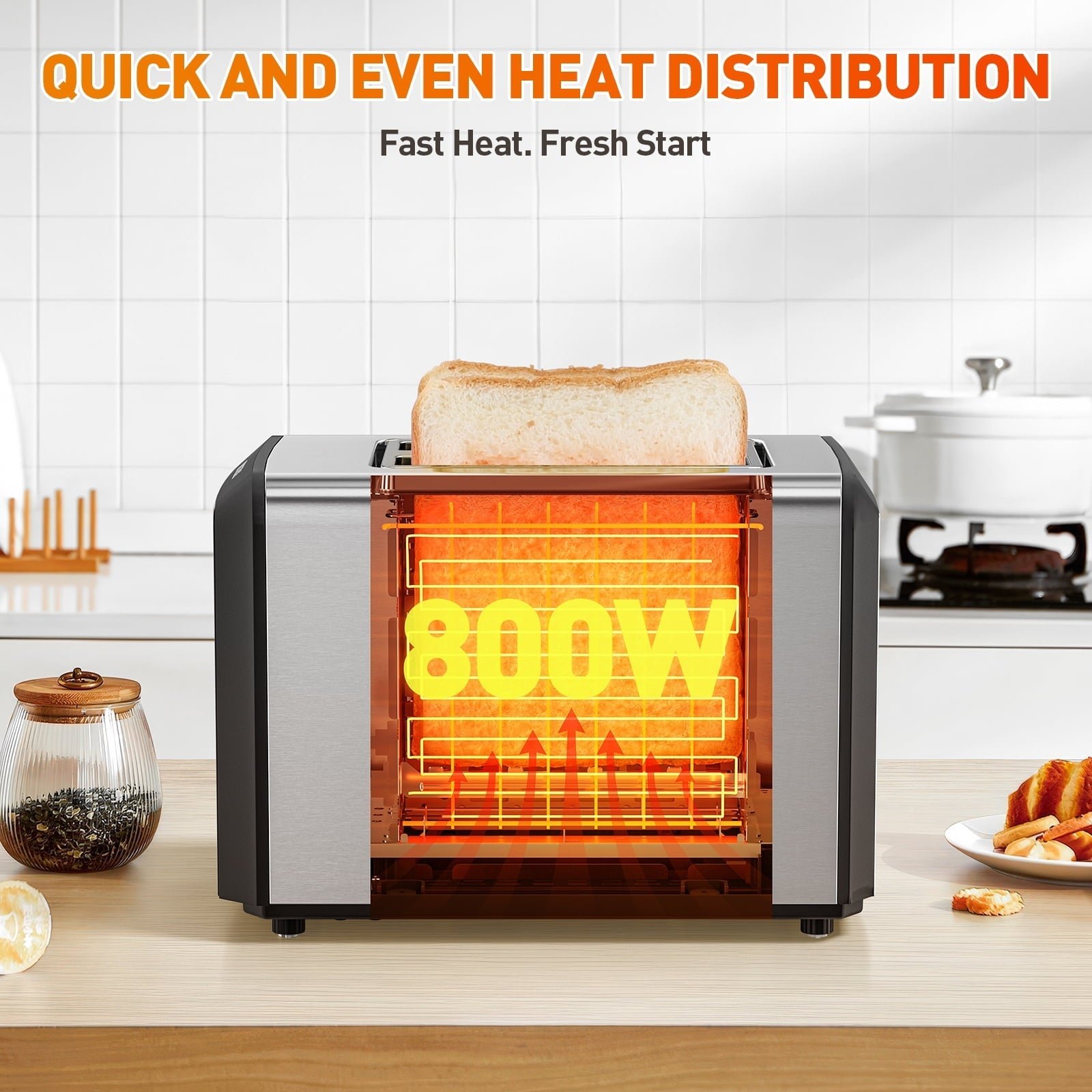 Touchscreen & Digital Countdown – This 2 slice toaster offers intuitive touchscreen controls with a digital countdown, making it easy to monitor and perfect every toast