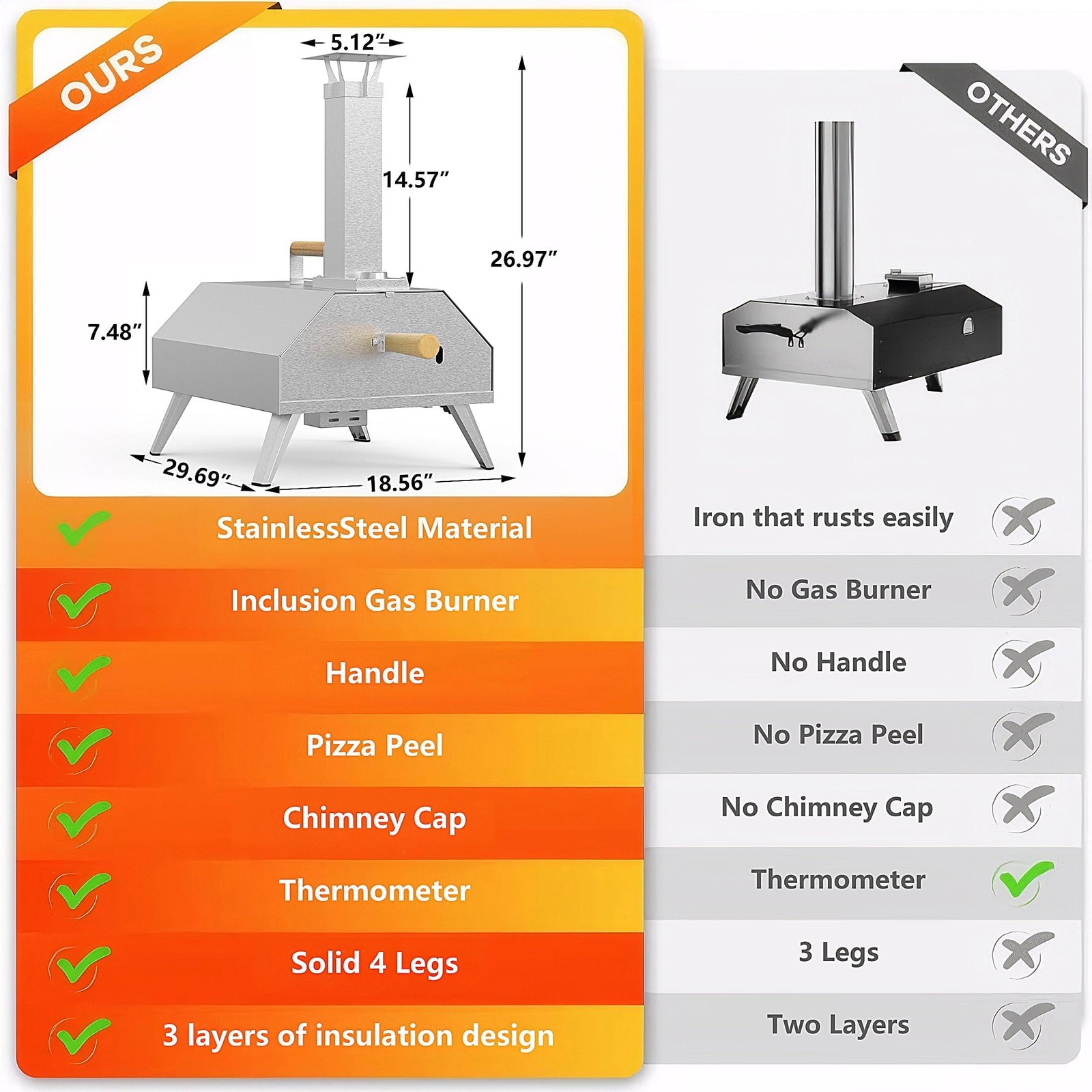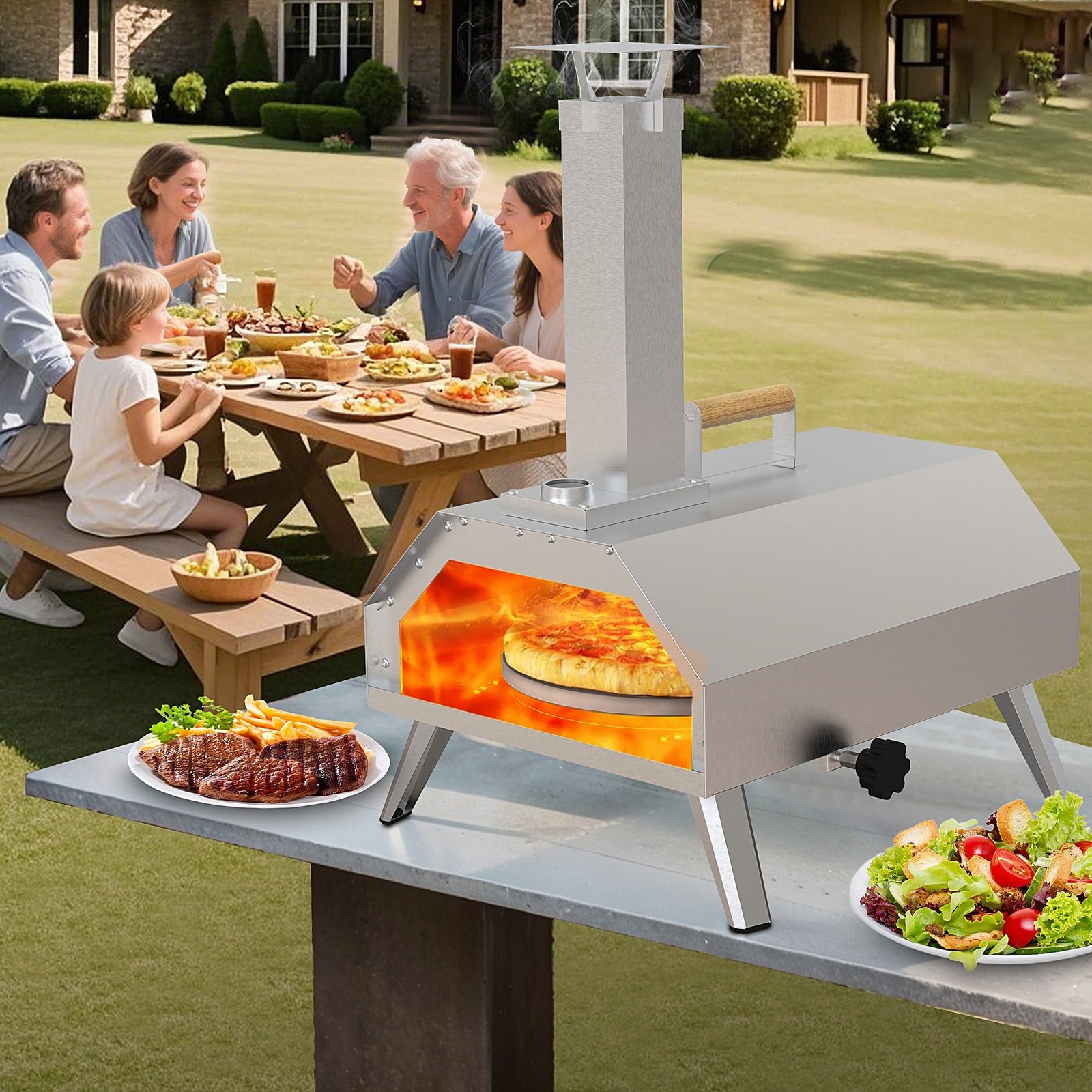 ✅ Compact & Portable Design – The outdoor pizza oven is easy to transport and set up—perfect for backyard patios, tailgates, camping trips, or picnic spots.